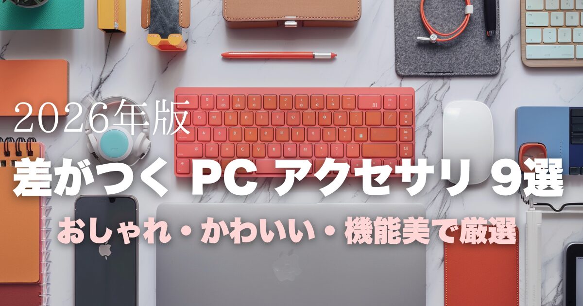 実は、パソコン本体を変えなくても周辺アクセサリを少しこだわるだけで、デスクの雰囲気もテンションも一気に上がります。この記事では編集部が実際に調べた、人と差がつくパソコン周辺アクセサリを9つご紹介します。おしゃれ・かわいい・機能的の3軸で厳選しましたので、ぜひ「欲しい!」と思えるアイテムを見つけてください。